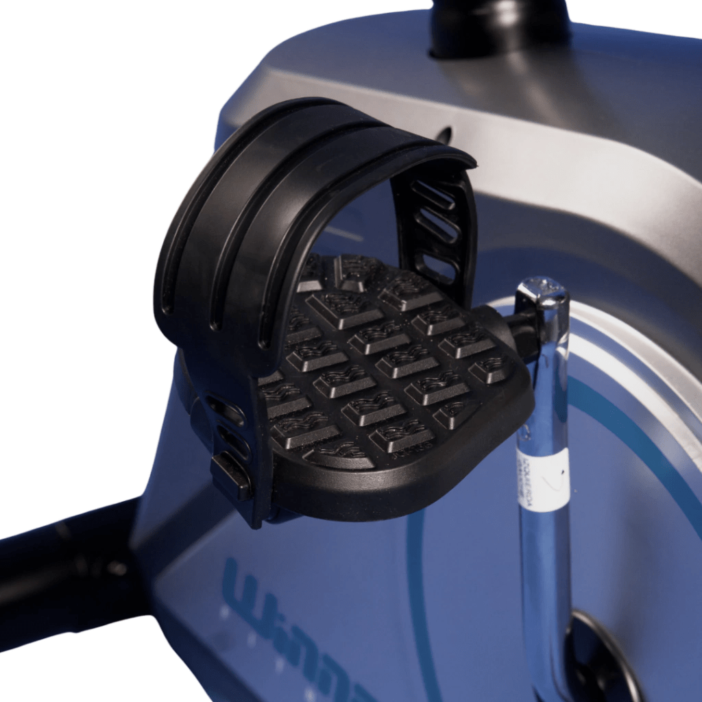 - Conforto e Segurança – Selim ajustável e pedais com straps, proporcionando melhor ergonomia e estabilidade;