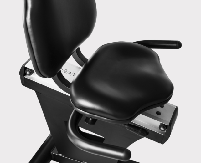 Seu assento é macio e anatômico, com amplo encosto de costas para total comodidade. Possui micro-regulagens para ajustar o assento de forma fácil e prática, com marcadores numéricos que permitem que o assento seja colocado na posição ideal para cada usuário rapidamente.