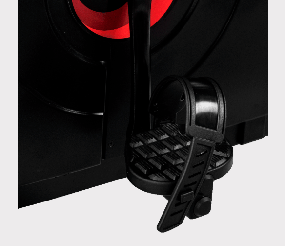 Os pedais são antiderrapantes, auto-balanceados e possuem alça de segurança para maior confiança em treinos avançados.